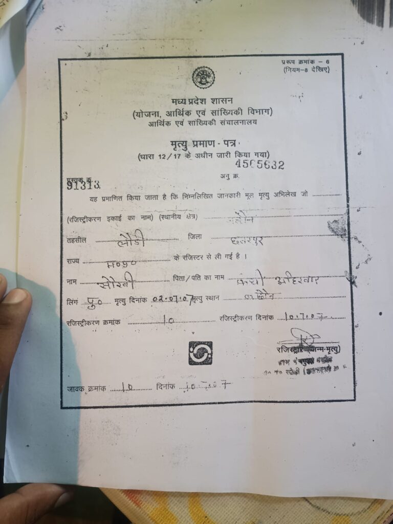 छतरपुर की चंदला तहसील के ग्राम बछौना निवासी सौखी अहिरवार मंगलवार को जनसुनवाई में पहुंचे थे. उन्होंने कलेक्टर को बताया कि वे पढ़े-लिखे नहीं हैं और कम सुनते हैं. उन्होंने बताया कि ग्राम सचिव ने उनके नाम से 10 जुलाई 2007 को झूठा मृत्यु प्रमाण पत्र बना दिया और फिर ग्राम पंचायत की नामांतरण पंजी में प्रस्ताव क्रमांक 12 के तहत 22 अक्टूबर 2007 को उनकी जमीन देवीदीन अहिरवार के नाम कर दी.