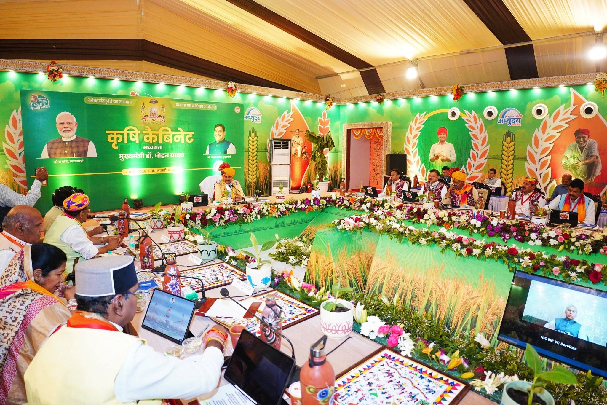मुख्यमंत्री डॉ. मोहन यादव ने कहा कि किसान कल्याण वर्ष की यह पहली कैबिनेट है। किसान कल्याण वर्ष में हर अंचल में कृषि कैबिनेट होगी । भविष्य में प्रदेश के विभिन्न स्थानों में कृषि कैबिनेट का आयोजन कर किसान कल्याण की दिशा में अनेक निर्णय लिए जाएंगे। भगोरिया पर्व पर जनजातीय वर्ग के सम्मान और कल्याण का सशक्त संदेश भी दिया ।