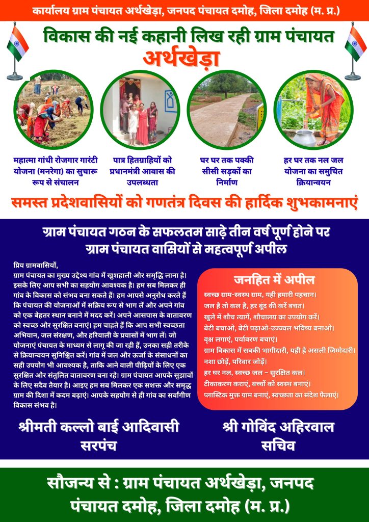 ग्राम पंचायत अर्थखेड़ा का विकास कार्यों पर आधारित विज्ञापन